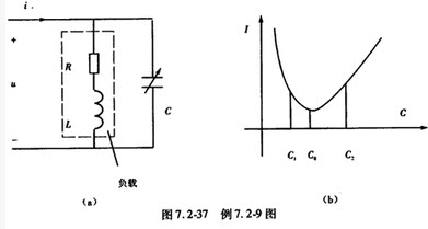 如图7.2-37(a)电路中,电容C可调,若感性负载的功率因数为cos,并接电容后,电路的功率因数为cos’,电路的端口电流i的有效值I和电容C的关系如图7.2-37(B)所示,则下列说法