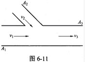 汇水管如图6-11所示,1~3部分水管的横截面积分别为A1=O.01m2,A2=0.005m2,A3=0.01m2,入流速度ν1=4m/s,ν2=6m/s,出流速度ν3为()。