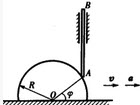 半圆形凸轮沿水平滑槽滑动并推动铅直杆AB沿铅直滑槽滑动。图示位置凸轮有速度为v,加速度为a,=30°,凸轮半径为R,则此瞬时杆AB的加速度为()。