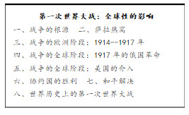 右侧是《全球通史》中的第二十章的目录,你认为“战争的根源”是什么?其中,第四部分应讲述什么具体内容?目录反映了本章叙述的视角是什么?