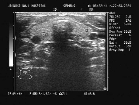如图所示,双肾结构清晰,左肾体积小,该病例最可能诊断是( )
