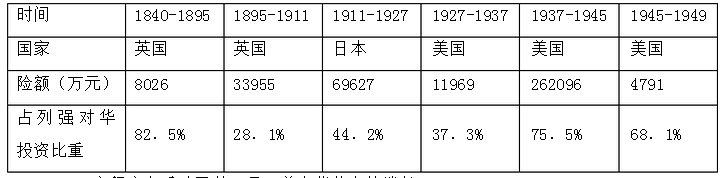 下表为近代不同时期在华投资总额最多的国家的相关数据统计。对其解读正确是()