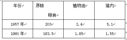 下表为我国1957—1960年间城乡居民人均年消费量(公斤)