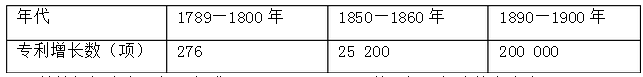 读1789—1900年美国专利技术增长情况表,由此得出史论一致的是()