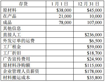 去年,某公司的销量为75,000件,产量为100,000件。该年的其他信息显示如下。