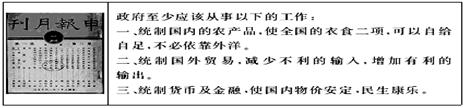 下框材料选自民国二十二年第二期《申报月刊》。这阐述的“统制经济”思想在当时的中国影响较大,其客观因素是()。