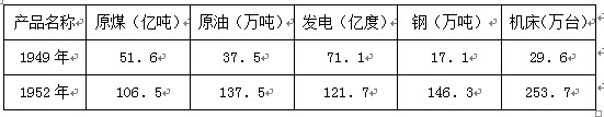 下表是上世纪中期,我国工业品产量指数比(以1949年以前的最高年为100)。表中发生重大变化的原因是()