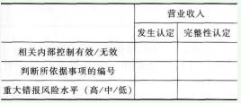 (简答题)针对资料二,结合资料一,假定不考虑其他条件,请分别判断与主营业务收入的发生认定和完整性认定相关的内部控制程序是否有效[请说明所做判断是以资料二第(1)至第(7)事项中的哪一个或者哪几个事项为依据的],并在此基础上,分别确定针对营业收入的发生认定和完整性认定的重大错报风险水平。请将答案直接填人下列表格内。