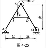图4-25所示起重机的平面构架,自重不计,且不计滑轮自重。已知F=100kN,L=70cm,B、D、E为铰链连接,则支座A的约束力为()。