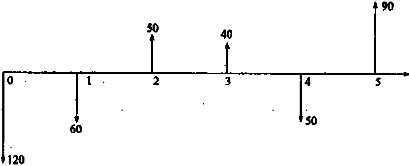 如下现金流量图中,若横轴的时间单位为年,则大小为40的现金流量的发生时点为()。