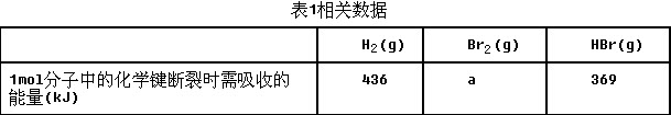 蒸发1molBr2(l)需吸收30kJ能量其他相关数据如表1