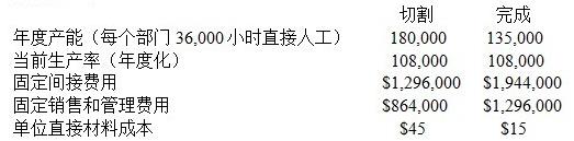 Antlers公司生产一种单一产品,售价每个$150。这个产品通过切割部门和完成部门。这些部门的额外数据如下