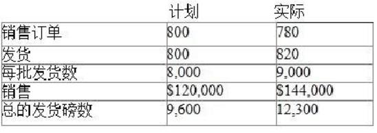 一个公司为它的运输费用制定了以下的预算公式。历史上每次发货的平均总量是12磅。运输成本=$16,000+($.50×运输重量磅),关于当月的订单和运输的计划作业与实际作业如下表所示: