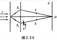 如图2.3-2所示,用波长为A的单色光照S(A)(B)缝干涉实验装置,若将一折射率为n的透明尖b插入光线2中,则当劈尖b缓慢地向上移动时(只遮住S2缝),屏C上干涉条纹的情况是()。