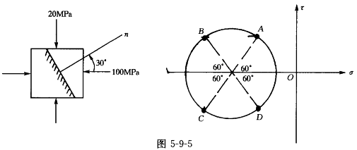 图5-9-5所示单元体及其应力圆。斜面,n上的应力情况,相对应于应力圆上的点为:()