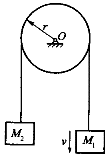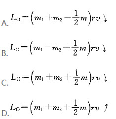 ,两重物系在不计质量的软绳上,绳绕过匀质定滑轮,滑轮半径为r,质量为m,则此滑轮系统对转轴0之动量矩为:()