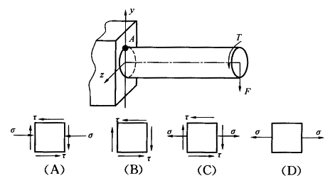 图示圆轴固定端最上缘A点的单元体的应力状态是()。