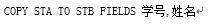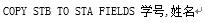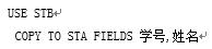 把学生数据库STA.DBF的学号和姓名字段的数据复制成另一数据库文件STB.DBF,应使用命令()