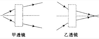 在学习完透镜后老师给同学布置了一个作图练习题,结果很多同学把光路所代表的透镜类型填错了。 题目:如图所示是两束激光分别射向通过甲、乙两透镜的传播路径,分别在两图中画出正确的透镜类型。