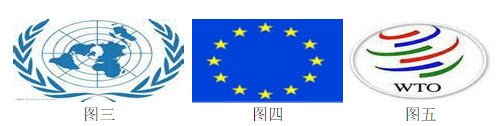 哪次会议决定成立图三中的国际组织?图四中组织的成立对当今世界格局产生了什么重大影响?图五中组织的宗旨是什么?