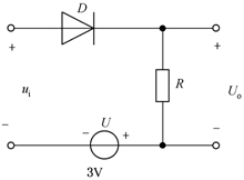 电路如图所示,D为理想二极管,ui=6sinωt(V),则输出电压的最大值UoM=()V。