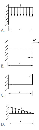 图示四个悬臂梁中挠曲线是圆弧的为:()