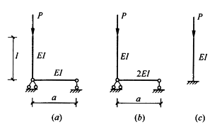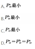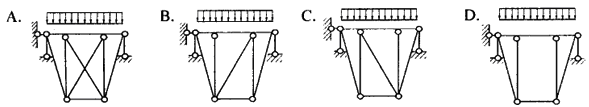在图示结构中,横梁的跨度、刚度和荷载均相同,各加劲杆的刚度和竖杆位置也相同,其中横梁的正弯矩最小或负弯矩最大的是哪个图示的结构?()