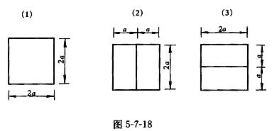 受力情况相同的三种等截面梁(图5-7-18),它们分别由整块材料或两块材料并列或两块材料叠合(未粘接)组成,如图(1)、(2)、(3)所示。若用(σ