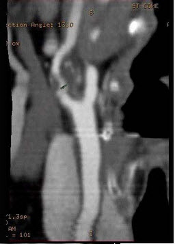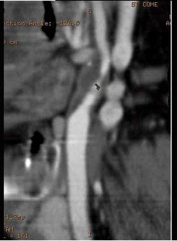 A:颈内动脉起始段有一长约3.0cm的狭窄段