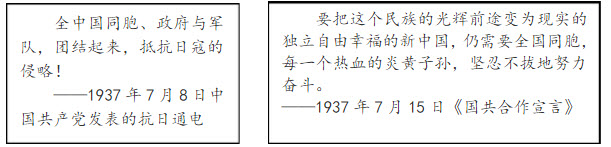 (简答题)(2)面对日本发动的全面侵华战争,中共发表的抗日通电和《国共合作宣言》发出什么共同呼吁?中华民族由衰败到重新振兴的转折点是什么?
