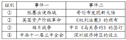 学习历史要关注事件之间的联系。下表各组中两事件之间存在密切历史关联的有()