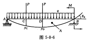 图5-8-6所示线弹性材料简支梁AB,承受均布载荷q,集中力P,集中力偶M作用,挠曲线如图示。设U为梁的应变能,则
