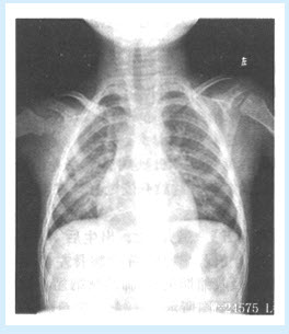 患儿,男,3岁,发热、咳嗽、咳痰1天。查体:双肺可闻及湿啰音。X线平片如图所示。