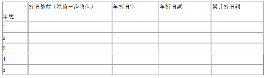 某机床的原始价值为100,000元,净残值为4,000元,折旧年限是5年,试按年数和法计算各年的折旧率和折旧额填表中。