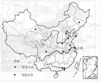 下图示意某跨国公司的制造企业和研发中心在中国的分布。