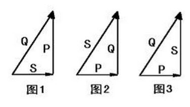 在下面的矢量图中,正确地表示了电感线圈中有功功率P、无功功率Q和视在功率S之间关系的图为()。