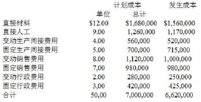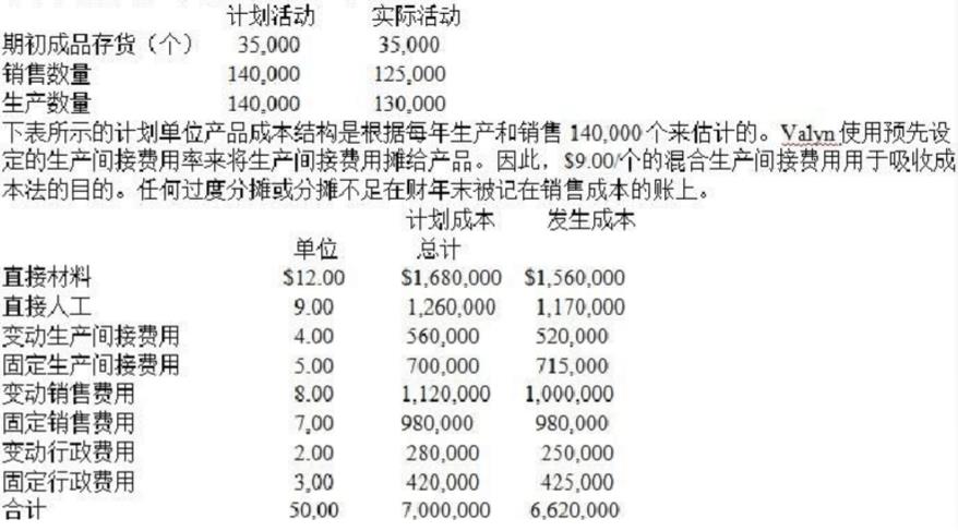 Valyn公司采用吸收成本作为内部报告。但是公司正在考虑采用变动成本法。关于Valyn公司自然年的计划和实际经营情况的数据如下所示: