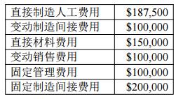 去年,某公司的销量为 75,000 件,产量为 100,000 件。该年的其他信息显示如下