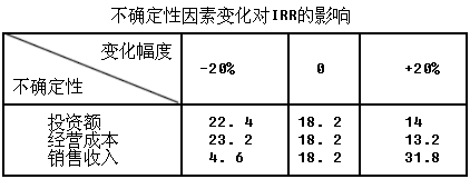 对某项目投资方案进行单因素敏感性分析,基准收益率15%,采用内部收益率作为评价指标,投资额、经营成本、销售收入为不确定性因素,计算其变化对IRR的影响如表所示。则敏感性因素按对评价指标影响的程度从大到小排列依次为:()