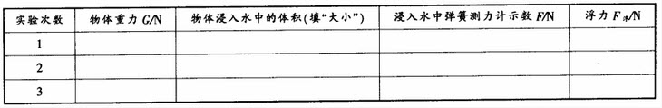 阅读材料,根据要求完成下列任务。 材料一:《义务教育物理课程标准(2011年版)》关于“浮力”的内容标准为:“通过实验,认识浮力。探究浮力大小与哪些因素有关。知道阿基米德原理,运用物体的浮沉条件说明生产、生活中的一些现象。” 材料二:某八年级物理教科书“浮力”一节中关于“探究浮力与哪些因素有关”实验,内容如下: 探究浮力大小与哪些因素有关的实验 我们采用称重法测浮力,所用的器材有弹簧测力计、长方形金属块、分别装有适量的水和酒精的量筒各1个、细线。下面的表格可供参考: