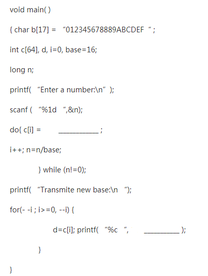 以下程序可把输入的十进制长整型数以十六进制数的形式输出,请填空。