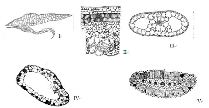 下列叶片的横切面中,何者(或哪些)适合生活在有水的环境()。