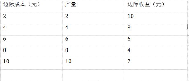 下面是某企业的产量、边际成本、边际收益情况: