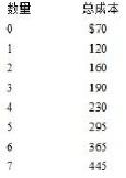 XYZ公司生产电锯,每个售价$70。以下的表格显示了XYZ的总成本,最大产量是7个。7个产品的平均成本是多少?()