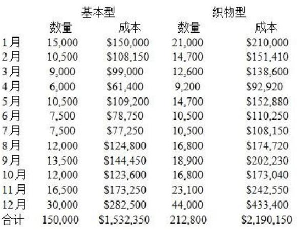 使用高低法,估计基本型和织物型的固定生产成本?()