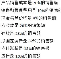 Berwick公司使用销售百分比法来预测模拟财务报表。基于历史的财务报表,可以建立销售额与几个事项之间的关系:
