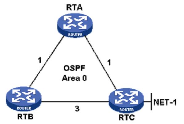 C:对RTB而言,到达目的网段NET-1会优先选择RTB--->RTA--->RTC路径