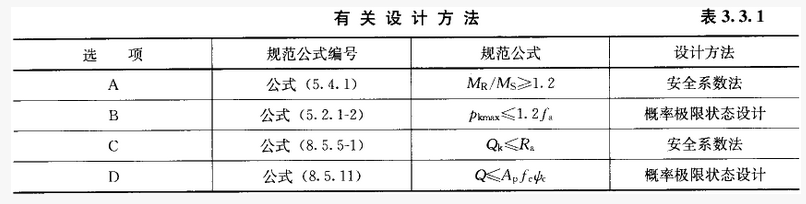 表3.3.1所列关于《建筑地基基础设计规范》GB50007-2011有关公式所采用的设计方法的论述中,正确的是()。