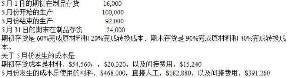 (单选题)Pane的预算包括直接人工成本$320,000和间接费用$448,000。假设在12月31日没有在制品。Pane这年的间接费用有()