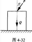 图4-32中,物块重力为Q,放在粗糙的水平面上,其摩擦角φ=20°,若力P作用于摩擦角之外,并已知α=30°,P=Q,物体是否能保持平衡()。